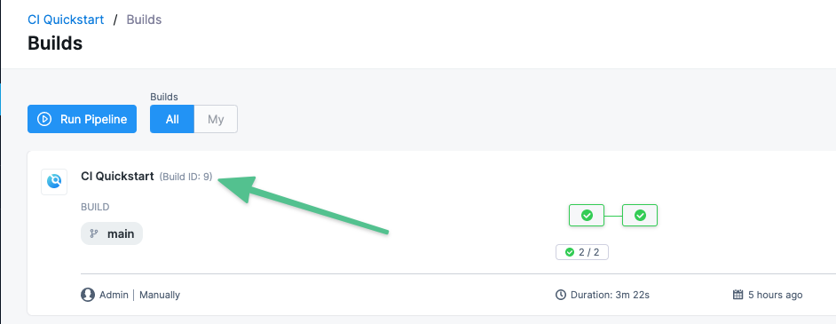 as a tag, after the pipeline runs, you can see the Build Id